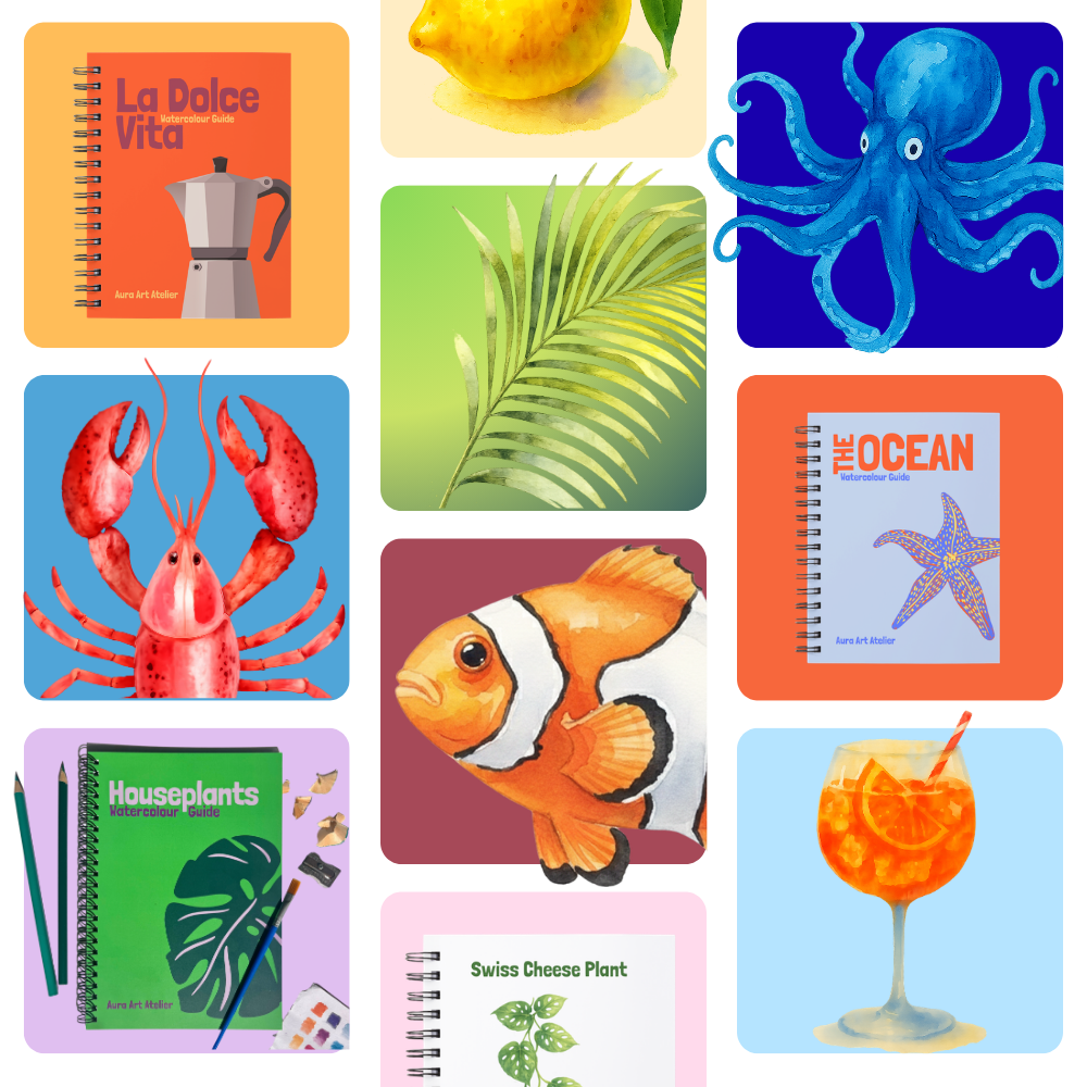 Watercolour kits with everything you need: paints, brush, paper and inspiration. No experience needed - just bring your creativity.